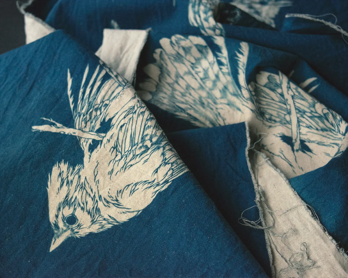 “Pest” | 5” x 7” | experimental pieces using cyanotype, collage, and botanical dyes